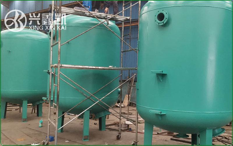 我公司生產(chǎn)的纖維球過(guò)濾器,采用304或碳鋼襯膠仿佛處理,上吊籃布水,防止反洗的過(guò)程纖維球“跑”到管道,下有不銹鋼管式布水和穹形板布水,隔板布水。